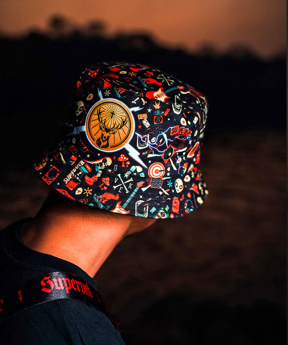 Fancy a good ol' switcheroo? On one side, this reversible bucket hat has the thundering Jagermeister logo against the #KeepPushing pattern inspired by various elements of street subcultures. The other side features the Jagermeister x Supervek branding against a minimal black colourway.