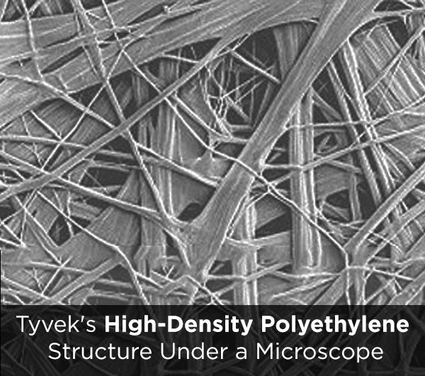 Tyvek® contains millions of non-woven fibers making it incredibly strong and durable in-spite of being thin and light-weight.