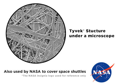 Tyvek® contains millions of non-woven fibers making it incredibly strong and durable in-spite of being thin and light-weight.